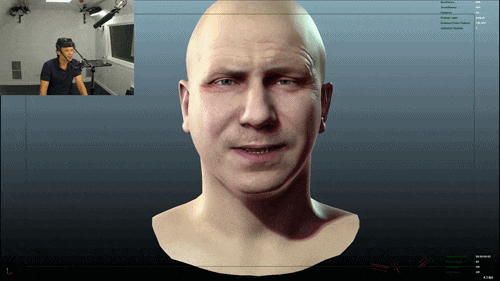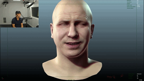 First, a video featuring a rig worn by an actor to mimic facial expressions